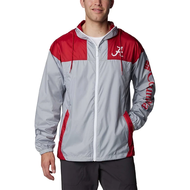 Veste à capuche coupe-vent entièrement zippée Columbia Crimson Tide Flash Challenger Omni-Shade pour hommes, gris