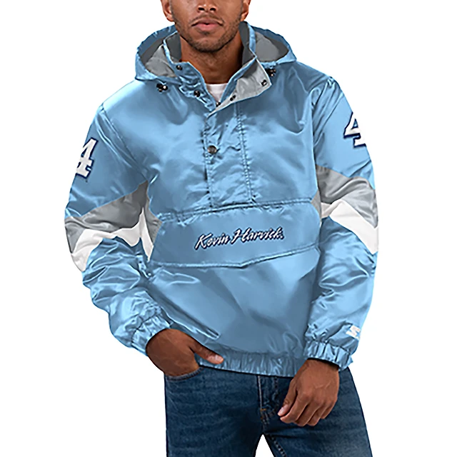 Veste à capuche demi-zip en satin pour homme Starter bleu clair Kevin Harvick Home Team