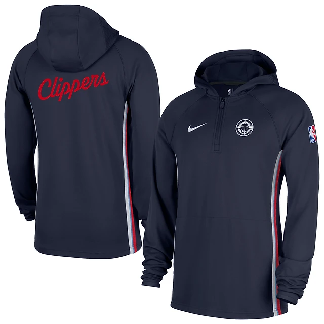 Veste à capuche Nike Navy LA Clippers Authentic On Court Zone Quarter-Zip Dri-FIT pour homme