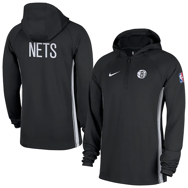 Veste à capuche Nike noire Authentic On Court Zone Dri-FIT pour homme, style Brooklyn Nets