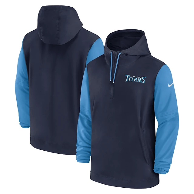 Veste à capuche Nike Tennessee Titans 2024/25 Sideline Pre-Game Player 1/2-Zip pour homme bleu marine/bleu clair