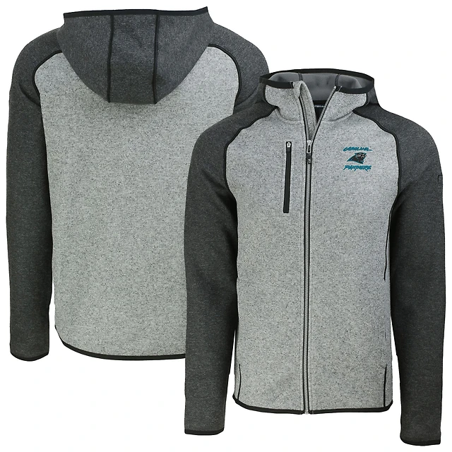 Veste à capuche raglan entièrement zippée pour homme, gris chiné, Cutter & Buck, Carolina Panthers Mainsail
