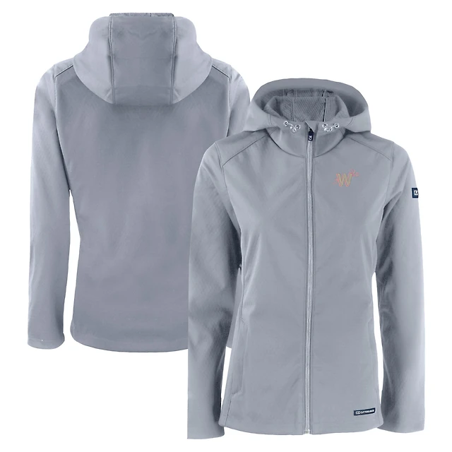 Veste à capuche zippée intégrale City Connect Evoke Eco Softshell recyclée pour femme, grise, des Nationals de Washington, Cutter & Buck