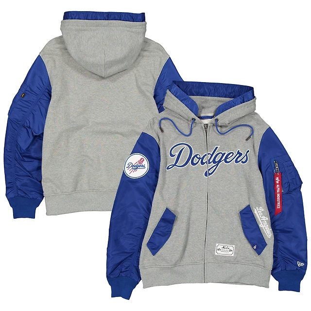 Veste à capuche zippée New Era x Alpha Industries pour homme, gris chiné/bleu royal, Los Angeles Dodgers