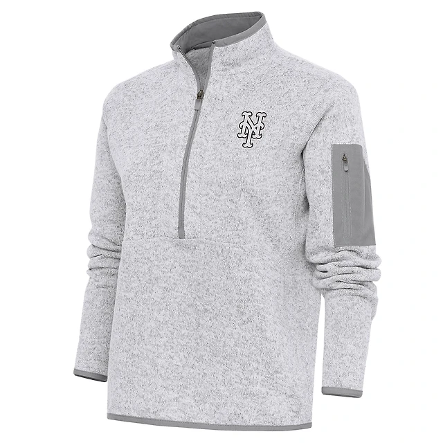 Veste à enfiler demi-zippée Fortune métallisée brossée Antigua Heather Grey New York Mets pour femme