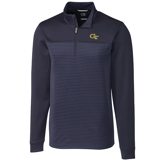 Veste à enfiler demi-zippée rayures Traverse pour homme, bleu marine, Georgia Tech Yellow Jackets, grande taille