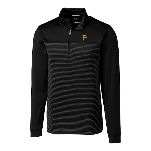 Veste à enfiler demi-zippée rayures Traverse pour homme, noire, des Pirates de Pittsburgh, grande taille, Cutter & Buck