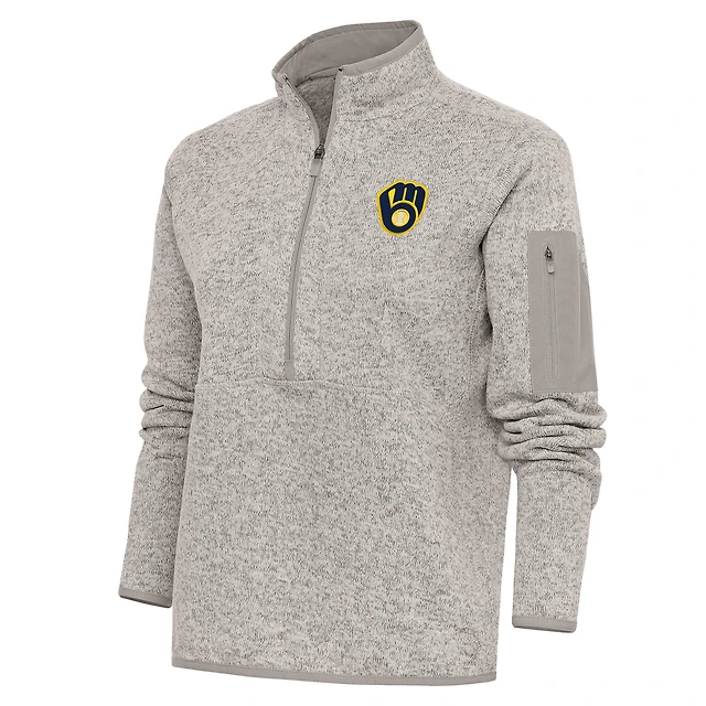 Veste à enfiler glissière quart de tour avec logo Fortune des Milwaukee Brewers pour femme Antigua Oatmeal