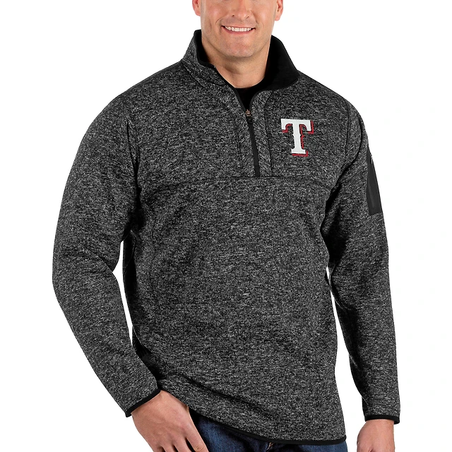 Veste à enfiler glissière quart de tour Fortune Texas Rangers pour homme Antigua Heather Black Big & Tall