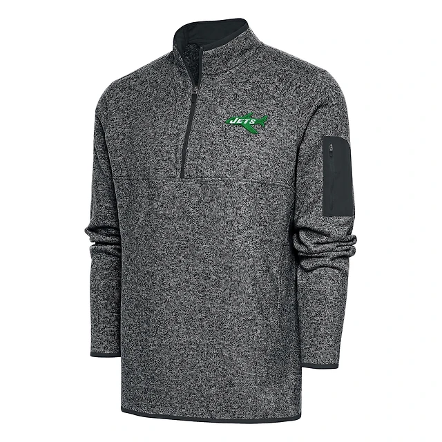 Veste à enfiler quart de zip Antigua Heather Charcoal New York Jets Throwback Fortune pour homme