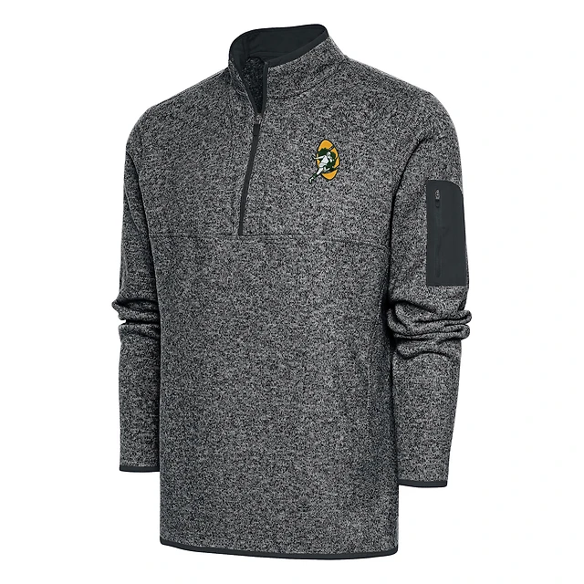 Veste à enfiler quart de zip Antigua Heather Charcoal pour homme des Green Bay Packers, style rétro Fortune