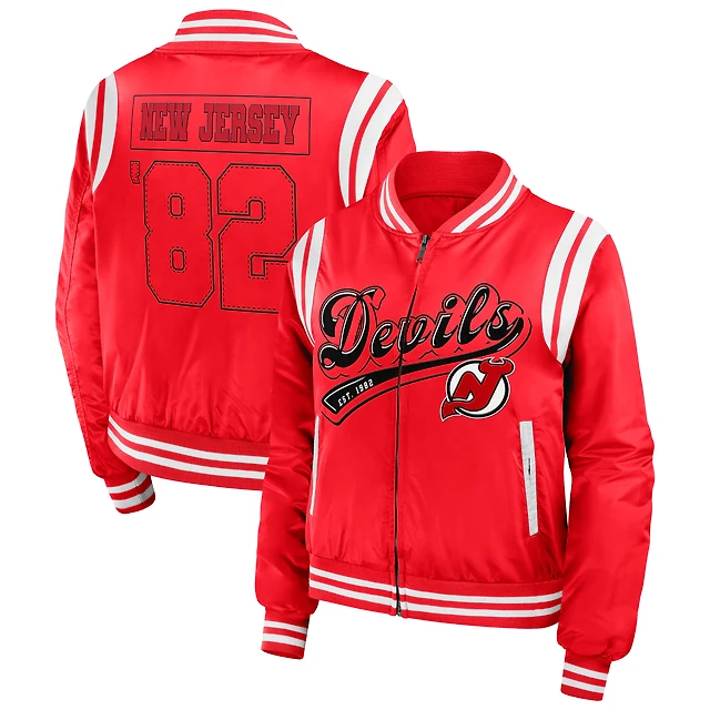 Veste aviateur entièrement zippée Baller des Devils du New Jersey rouge WEAR by Erin Andrews pour femme