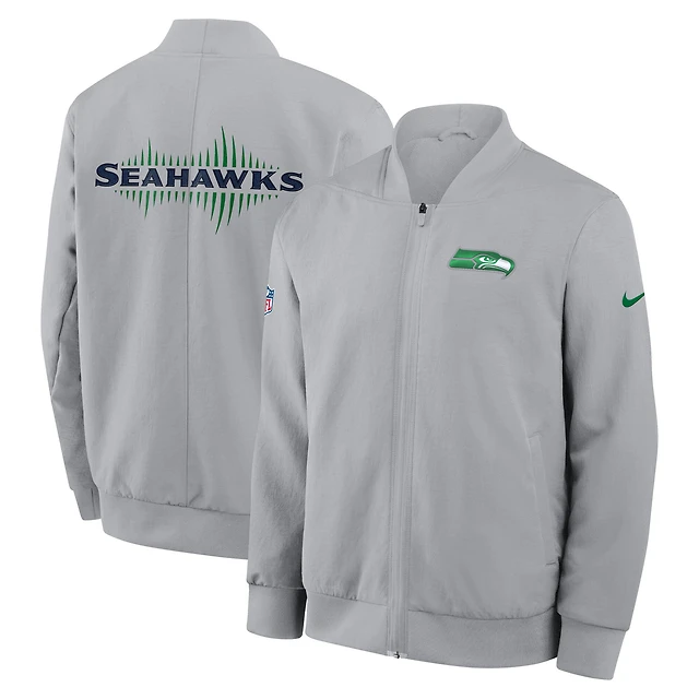 Veste aviateur zippée Nike gris loup pour homme, collection Rivalries 2025 des Seattle Seahawks