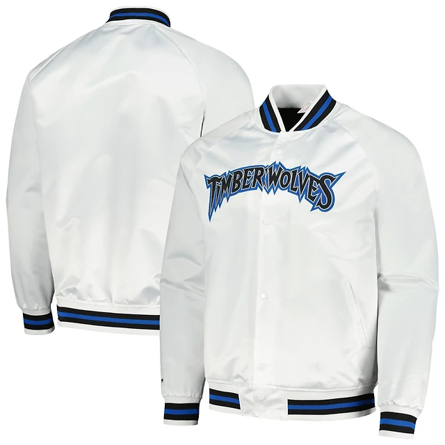 Veste blanche à bouton-pression raglan pour hommes Mitchell & Ness Minnesota Timberwolves Hardwood Classics Throwback Wordmark