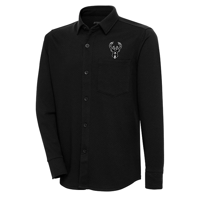Veste boutonnée noire Antigua Milwaukee Bucks pour homme