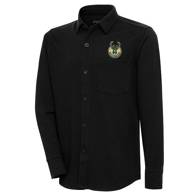 Veste-chemise boutonnée Antigua noire Milwaukee Bucks pour homme