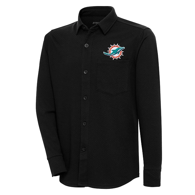 Veste-chemise boutonnée noire Antigua Miami Dolphins pour homme