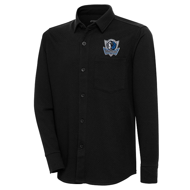 Veste-chemise boutonnée noire Dallas Mavericks Antigua pour homme