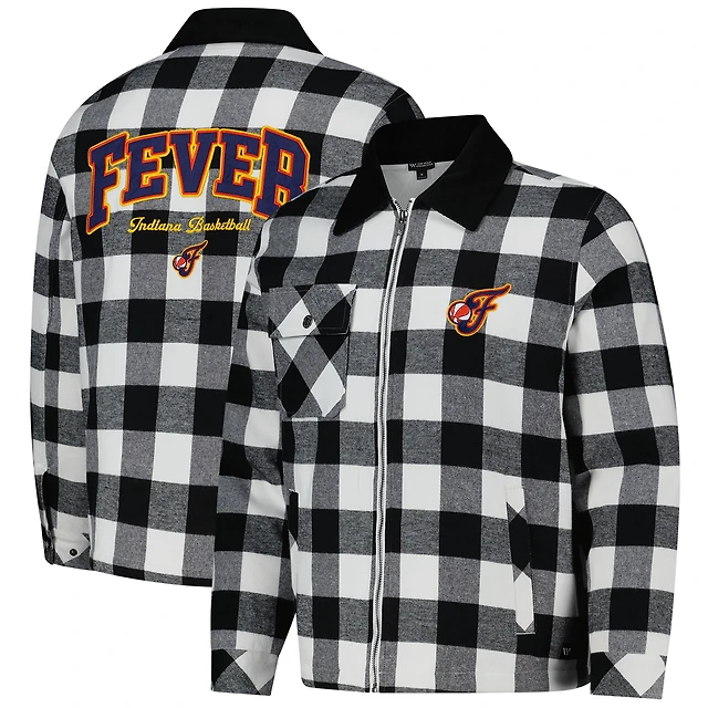 Veste-chemise unisexe en flanelle noire/blanche à fermeture éclair intégrale Indiana Fever de The Wild Collective