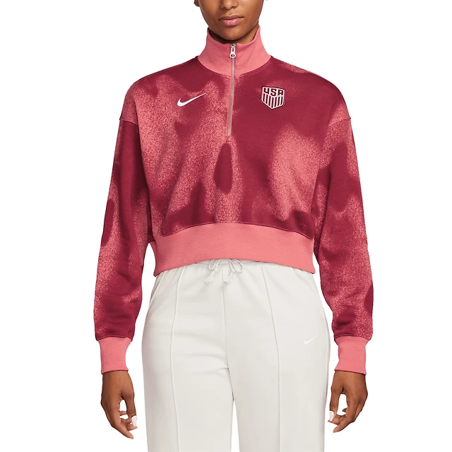Veste courte à zip quart de Nike USMNT Phoenix Fleece pour femme rose