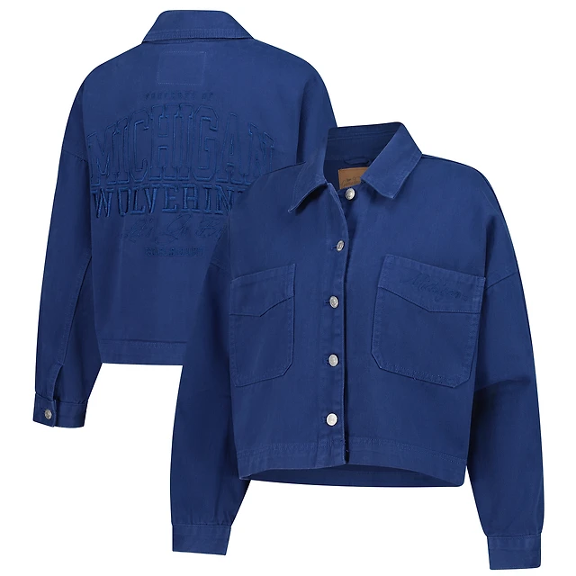 Veste courte boutonnée bleu marine des Wolverines du Michigan pour femmes