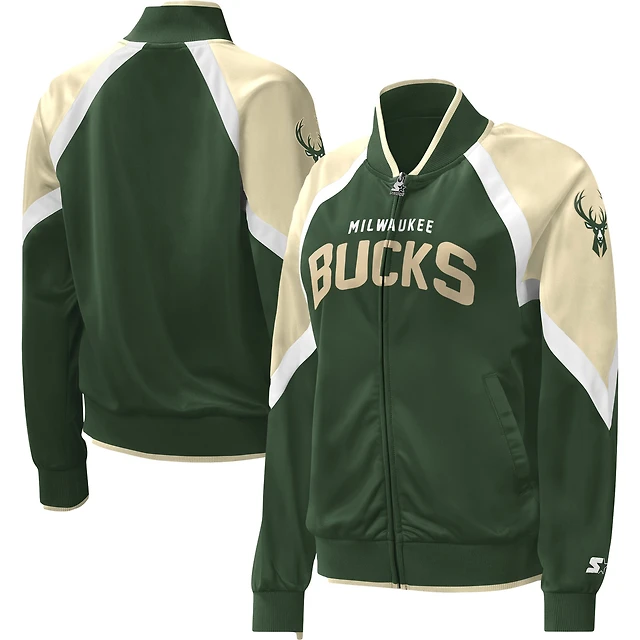 Veste de survêtement Starter Hunter Green Milwaukee Bucks Slam Dunk Raglan pour femme