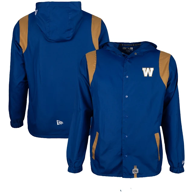 Veste d'entraîneur à boutons New Era pour homme, bleu, en tissu indéchirable, des Blue Bombers de Winnipeg