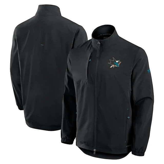 Veste d'entraîneur entièrement zippée authentique Pro Rink des Sharks de San Jose pour hommes Fanatics Black