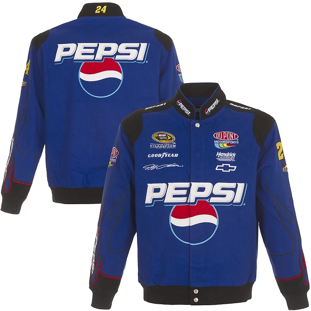 Veste d'uniforme en sergé à bouton-pression complète JH Design Royal Jeff Gordon Pepsi pour hommes