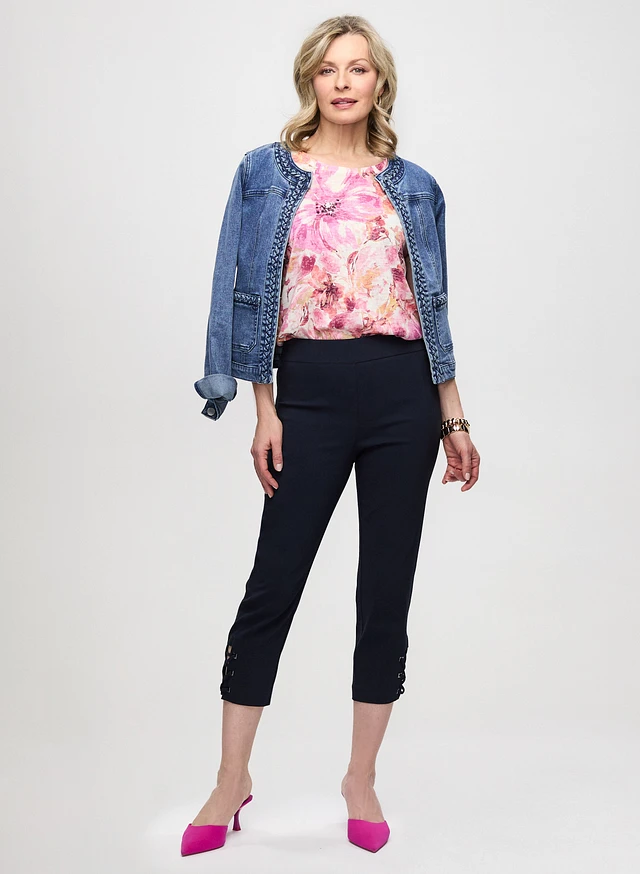 Veste en denim à détails tressés et capri en bengaline à enfiler