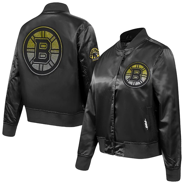 Veste en satin à boutons-pression et strass pour femme Pro Standard Boston Bruins noire