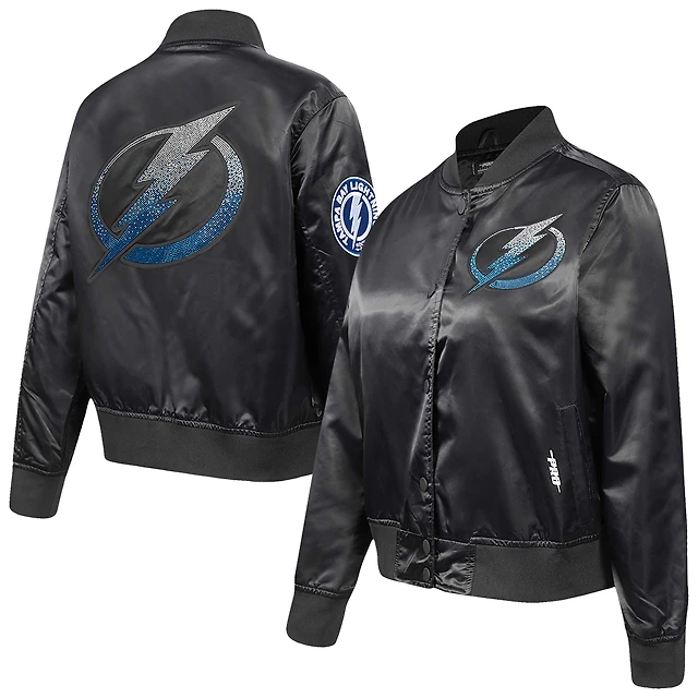 Veste en satin à boutons-pression pour femme Pro Standard Tampa Bay Lightning, noire, avec strass