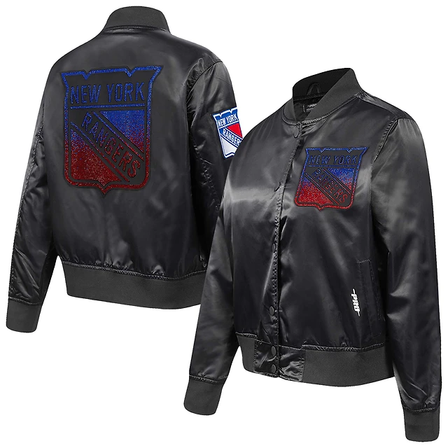 Veste en satin à boutons-pression Pro Standard pour femme, noire, avec strass, des Rangers de New York