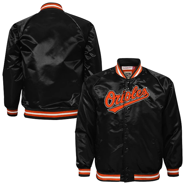 Veste en satin raglan noire à boutons-pression pour jeunes Mitchell & Ness Baltimore Orioles Cooperstown Collection
