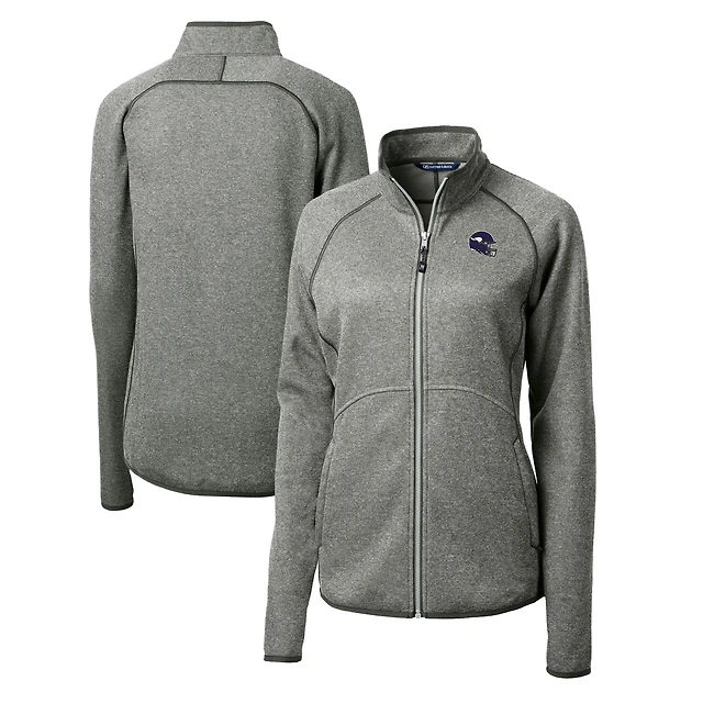 Veste en tricot à fermeture éclair intégrale pour femme, gris chiné, avec logo du casque des Vikings Minnesota, Cutter & Buck