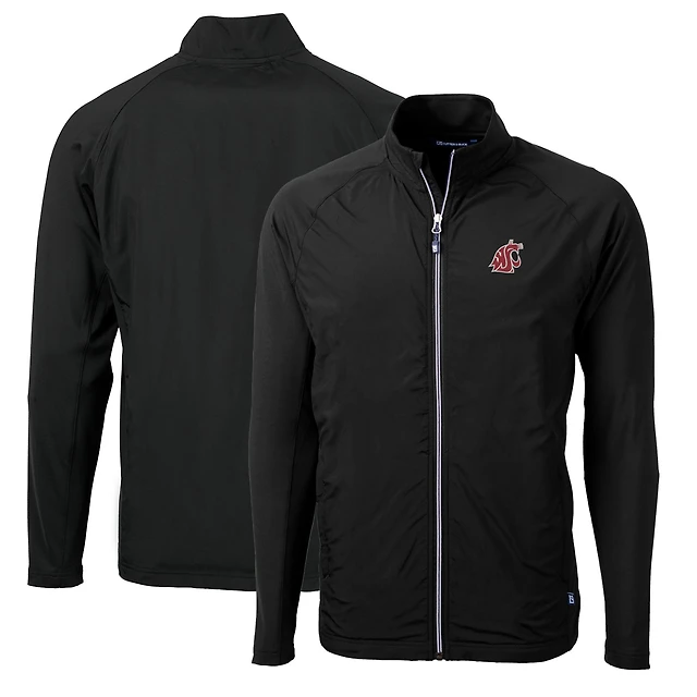 Veste hybride entièrement zippée en tricot écologique Adapt pour homme, noire, style coupe-vent et recyclé, Washington State Cougars, taille grande