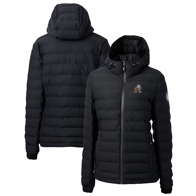 Veste matelassée entièrement zippée noire Cutter & Buck pour femme avec logo rétro des Cleveland Browns Mission Ridge Repreve