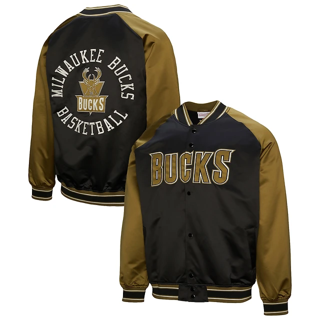Veste Mitchell & Ness olive Milwaukee Bucks Clutch Satin Raglan à boutons-pression pour homme