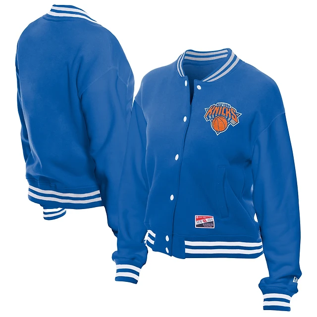 Veste New Era bleue à boutons-pression pour femme, style rétro des York Knicks