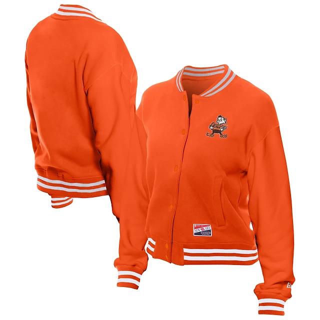 Veste polaire orange à boutons-pression New Era pour femme des Cleveland Browns