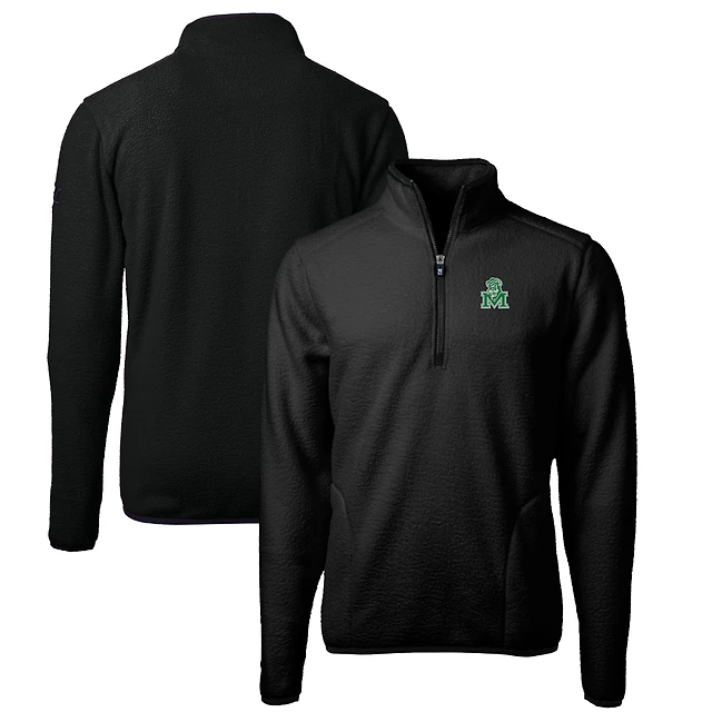Veste polaire sherpa écologique noire Marshall Thundering Herd Vault Cascade pour homme, coupe-vent et buck, avec fermeture éclair quart de tour