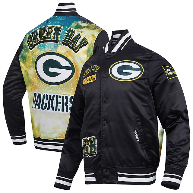 Veste Pro Standard noire en satin sublimé pour homme des Packers de Green Bay
