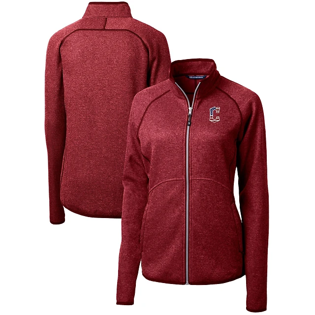 Veste pull en tricot entièrement zippée pour femme Cutter & Buck Cardinal Cleveland Guardians avec logo Americana Mainsail