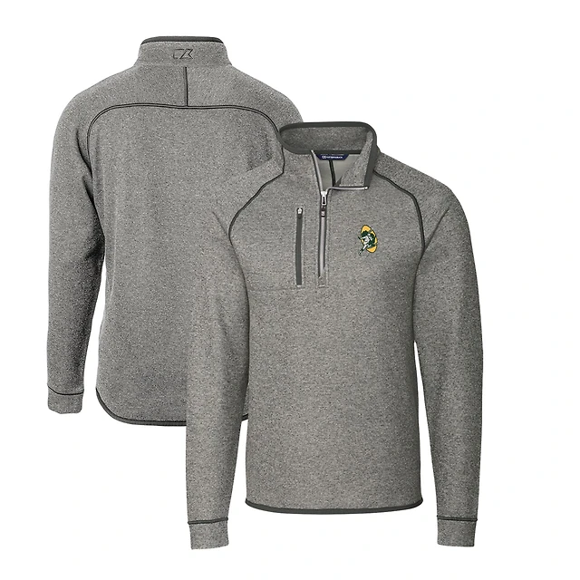 Veste pull-over demi-zippée en tricot avec logo rétro des Packers de Green Bay pour homme, Cutter & Buck, gris chiné