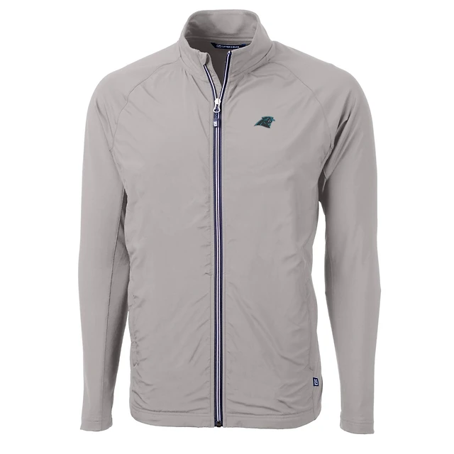 Veste raglan zippée intégrale en tricot écologique Adapt Big & Tall pour homme, gris, des Carolina Panthers, Cutter Buck