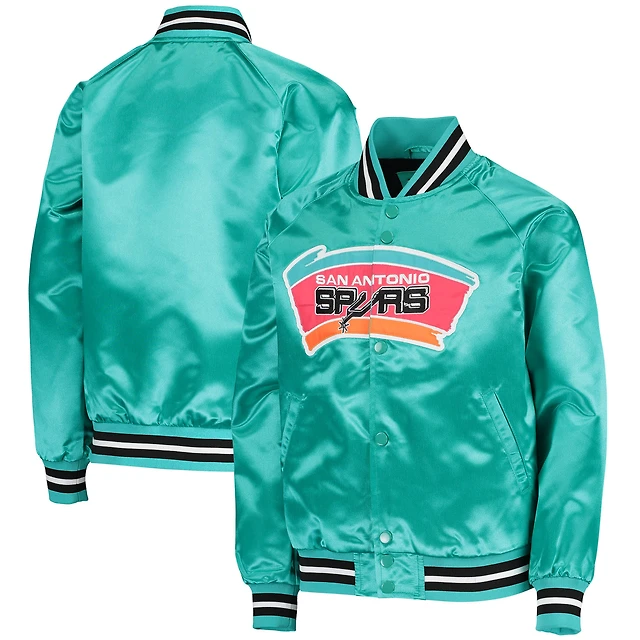 Veste San Antonio Spurs Hardwood Classics Satin Raglan Full-Snap pour jeune Mitchell & Ness Bleu sarcelle