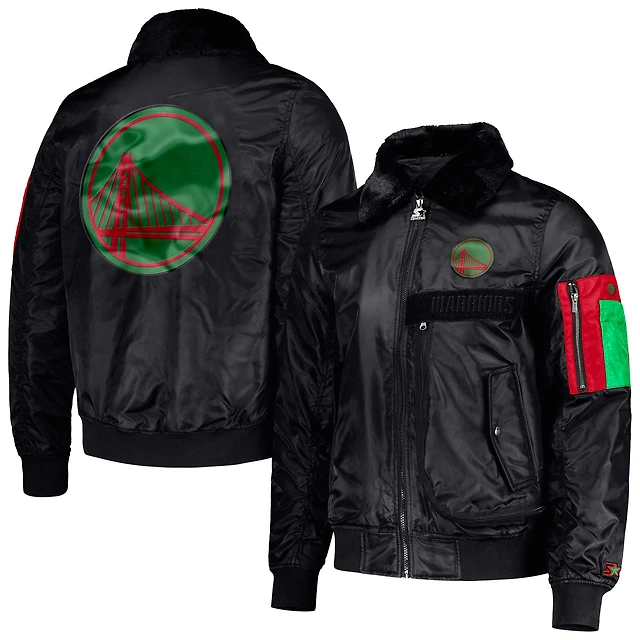 Veste Starter x Ty Mopkins noire pour homme Golden State Warriors Black History Month Satin Full-Zip Jacket