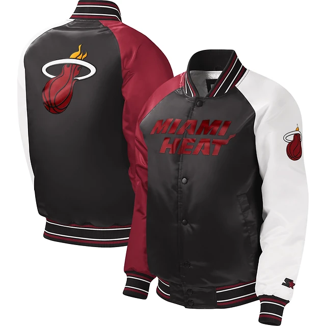 Veste universitaire à boutons-pression Miami Heat Raglan noire Starter pour jeune