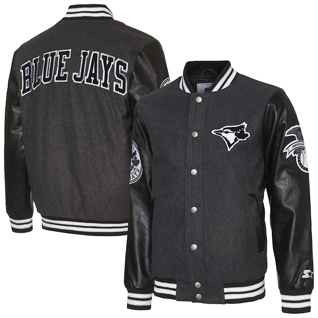 Veste universitaire boutonnée en satin pour hommes Starter noir des Blue Jays de Toronto First Rounder