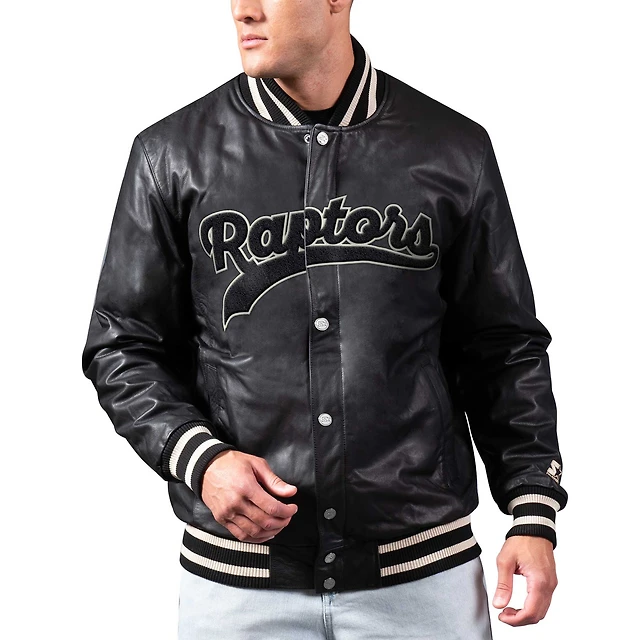 Veste universitaire en cuir Starter noire des Toronto Raptors Dynasty pour hommes